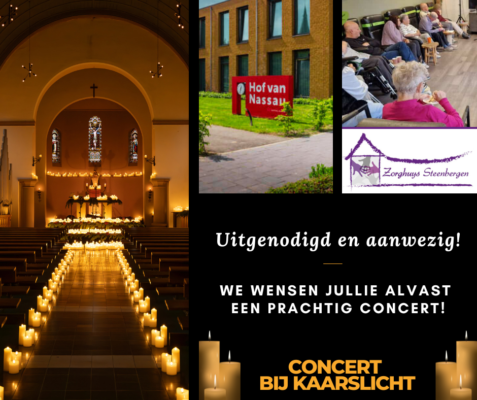Het doet ons deugd om te weten dat bewoners van zowel Hof van Nassau als Zorghuys Steenbergen aanwezig zullen zijn bij het derde Concert bij Kaarslicht. Een prachtige muzikale avond, en dat gewoon om de hoek, in de vertrouwde Gummaruskerk.